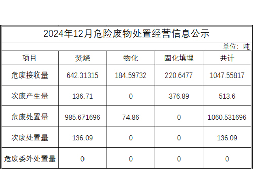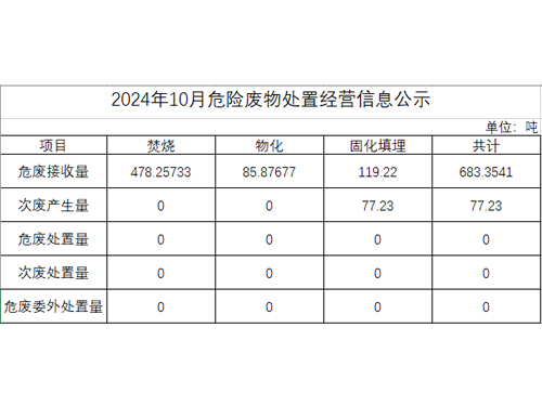 2024年9月份危險廢物處置經(jīng)營信息公示
