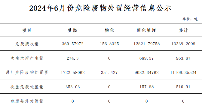 6月危險(xiǎn)廢物處置經(jīng)營(yíng)信息公示