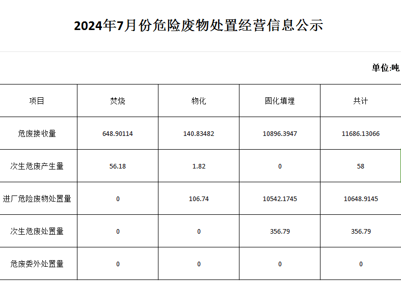 7月危險(xiǎn)廢物處置經(jīng)營(yíng)信息公示