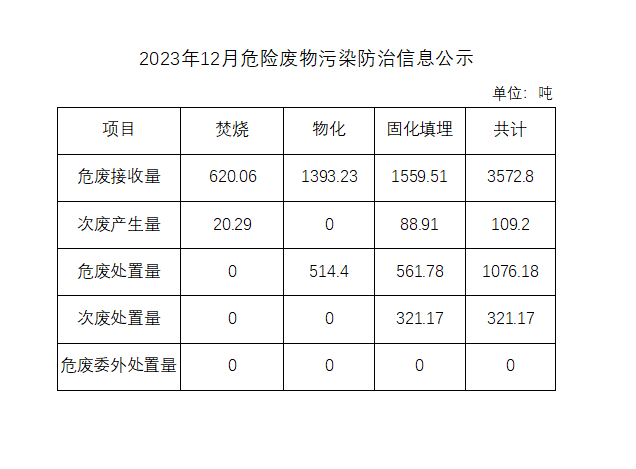 2023年12月危險(xiǎn)廢物污染防治信息公示