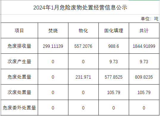 1月危險(xiǎn)廢物處置經(jīng)營信息公示
