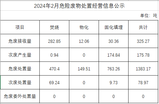 2月危險(xiǎn)廢物處置經(jīng)營信息公示
