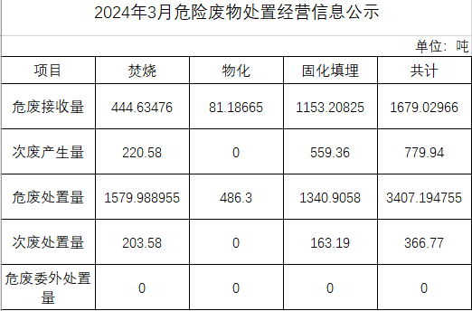 3月危險(xiǎn)廢物處置經(jīng)營信息公示