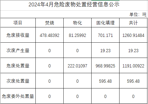 4月危險(xiǎn)廢物處置經(jīng)營信息公示