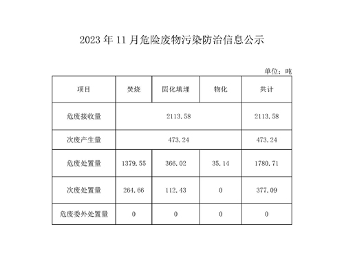 2023年11月危險(xiǎn)廢物污染防治信息公示
